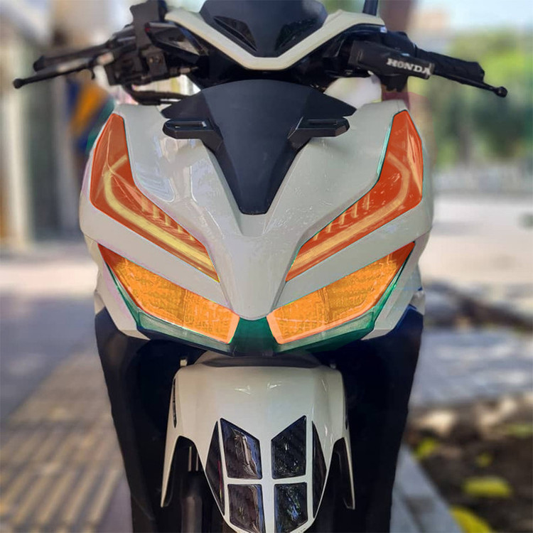 محافظ و برچسب چراغ جلو هوندا کلیک که در مواقع روشن شدن آن باعث عوض شدن نور آن می شود و به زیبایی موتور شما می افزاید این برچسب ها در رنگ ها منتوع موجود می باشند و هر کدام از آن نور متناسب با رنگ برچسب نصب شده بر روی آن را پخش می کند.