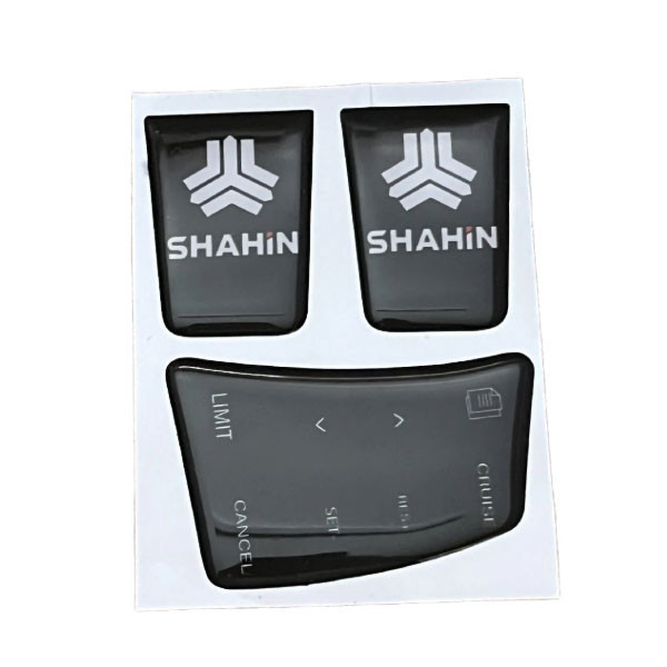 یکی از بزرگترین ضعف های خودرو شاهین در بخش داخل خودرو، جای خالی دکمه های کروز کنترل روی فرمان در نسخه پایه یا همان نسخه G خودرو شاهین است. ضعفی که با نشستن در کابین توجه هر فردی را به خودش جلب میکند و سایپا در کمال بی سلیقگی، این بخش را با دکمه های خالی جایگذاری کرده است. با گذشت حدود دو سال از عرضه خودرو شاهین، هنوز کروز کنترل این خودرو عرضه نشده است و همچنان جای خالی این دکمه ها روی فرمان خودنمایی میکند. ما برای اولین بار در ایران برچسب دکمه های کروز کنترل خودرو شاهین را عرضه کردیم که در چند رنگ مختلف مشکی و کربن میتواند جای خالی این دکمه ها را از روی فرمان از بین ببرد. اما برای رفع این ضعف تلاش کردیم محصول دیگر و کاربردی تر دیگری را تولید کنیم که در نهایت پس از چندین نسخه تست و بررسی به محصول فعلی رسیدیم. این محصول به عنوان شبیه سازی سه بعدی دکمه های کروز کنترل شاهین، ظاهری مشابه با دکمه های اصلی کروز شاهین دارد. این شبیه سازی کروز که به صورت کاملا فابریک تهیه شده است از نظر رنگ و ابعاد هم تا حد امکان به نسخه واقعی این محصول نزدیک است. روی این شبیه ساز سه بعدی دکمه های کروز یک لایه ژلاتین کشیده شده است که این ژلاتین به واقعی بودن بیشتر این محصول کمک میکند و از طرف دیگر با دادن یک ضخامت به این دکمهها آنها را واقعیتر نشان میدهد. این دکمههای سه بعدی کروز روی استیکرهای تایوانی چاپ شده است که نه تنها از نظر رنگ و چاپ ماندگاری عالی دارد بلکه چسب قدرتمند آن از بلند شدن استیکر از روی فرمان جلوگیری میکند. البته با توجه به قوس بالای فرمان ممکن است لبه های کار در سرما اندکی از روی کار بلند شود که در این صورت میتوانید با چسب قطره ای لبه های کار را محکم کنید. همچنین برای زیباتر کردن فرمان خودرو شاهین، استیکر دیگری به اسم مکمل فرمان هم تهیه کردهایم که این استیکر در بخش فرورفتگی پایین فرمان نصب میشود. از این رو این محصول شامل یک عدد شبیه سازی 3 بعدی دکمه های کروز و دو عدد مکمل فرمان با دو طرح مختلف میشود که شما میتوانید به سلیقه خودتان مدل مد نظر را در محل مشخص شده نصب کنید.