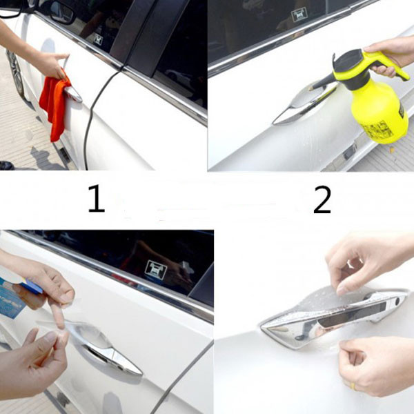 برای نصب فقط کافیه این سه مرحله رو انجام بدین:۱. سطح زیر دستگیره خودرو را با آب پاش مرطوب کنید۲.محافظ را از کاغذ آن جدا کرده و برچسب محافظ رو در ناحیه مرطوب مورد نظر بچسبانید۳. با درجه گرم سشوار روی برچسب دمیده تا رطوبت از بین برود.