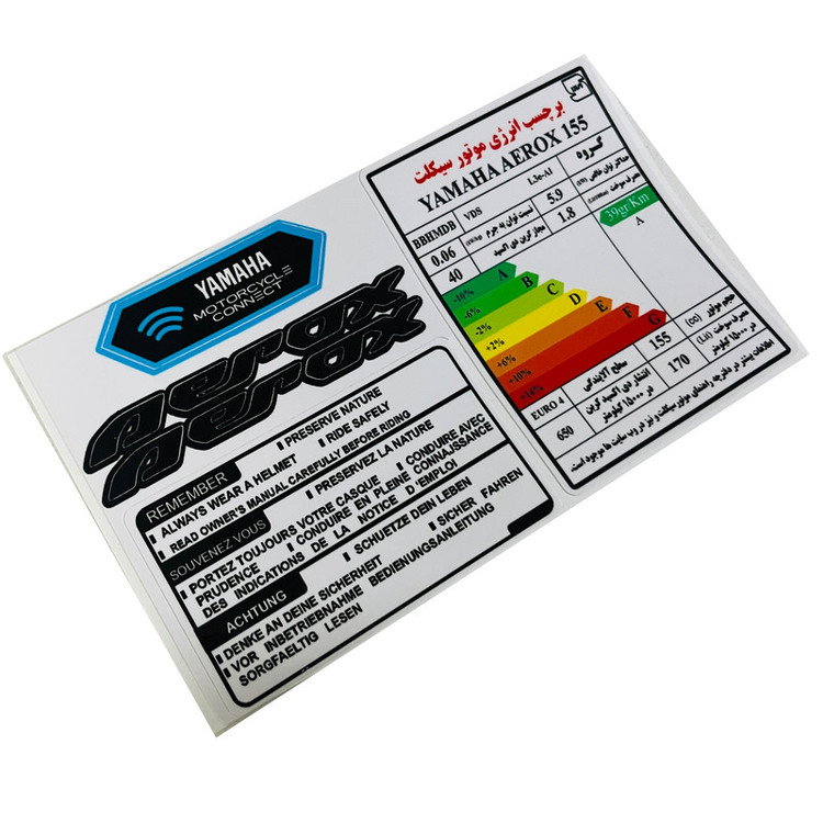 مقاوم در برابر نور خورشید و آب برچسب پی وی سی با پوشش رزین (ژله ای) نصب آسان بدون اثر گذاری روی موتور سیکلت بعد از جدا کردن