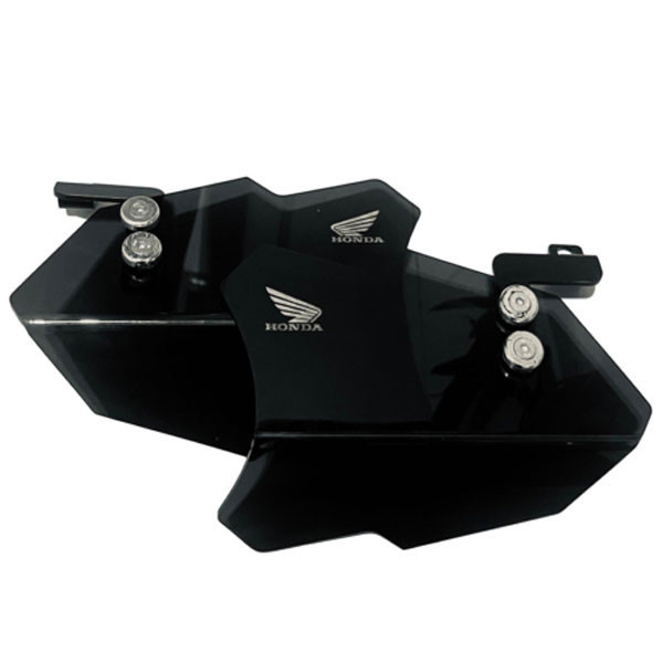 هندگارد | محافظ دسته فلزی طلق دار موتور سیکلت مشکی هندگارد موتورسیکلت یک تجهیز ایمنی است که در جلوی دستههای فرمان نصب میشود و به منظور محافظت از دستهای راکب در برابر برخورد با عوامل خارجی مثل شاخههای درختان، سنگها، باد و آب و همچنین در صورت سقوط موتورسیکلت طراحی شده است. هندگاردها بسته به مدل و نوع استفاده به فرمها و اندازههای مختلف موجود هستند و میتوانند از مواد مختلفی مانند فولاد، آلومینیوم، پلاستیک یا ترکیبی از این مواد ساخته شوند. هندگاردهای مجهز به طلق نیز اغلب در موتورسیکلتهای تورینگ و دوال-اسپرت استفاده میشوند که به غیر از محافظت از دستها، قابلیت محافظت از نور خورشید، باران و باد را ارائه میدهند. طلق هندگارد عموماً شفاف یا نیمهشفاف بوده و امکان مشاهده وضعیت دستها و کنترلهای فرمان را فراهم میآورد.